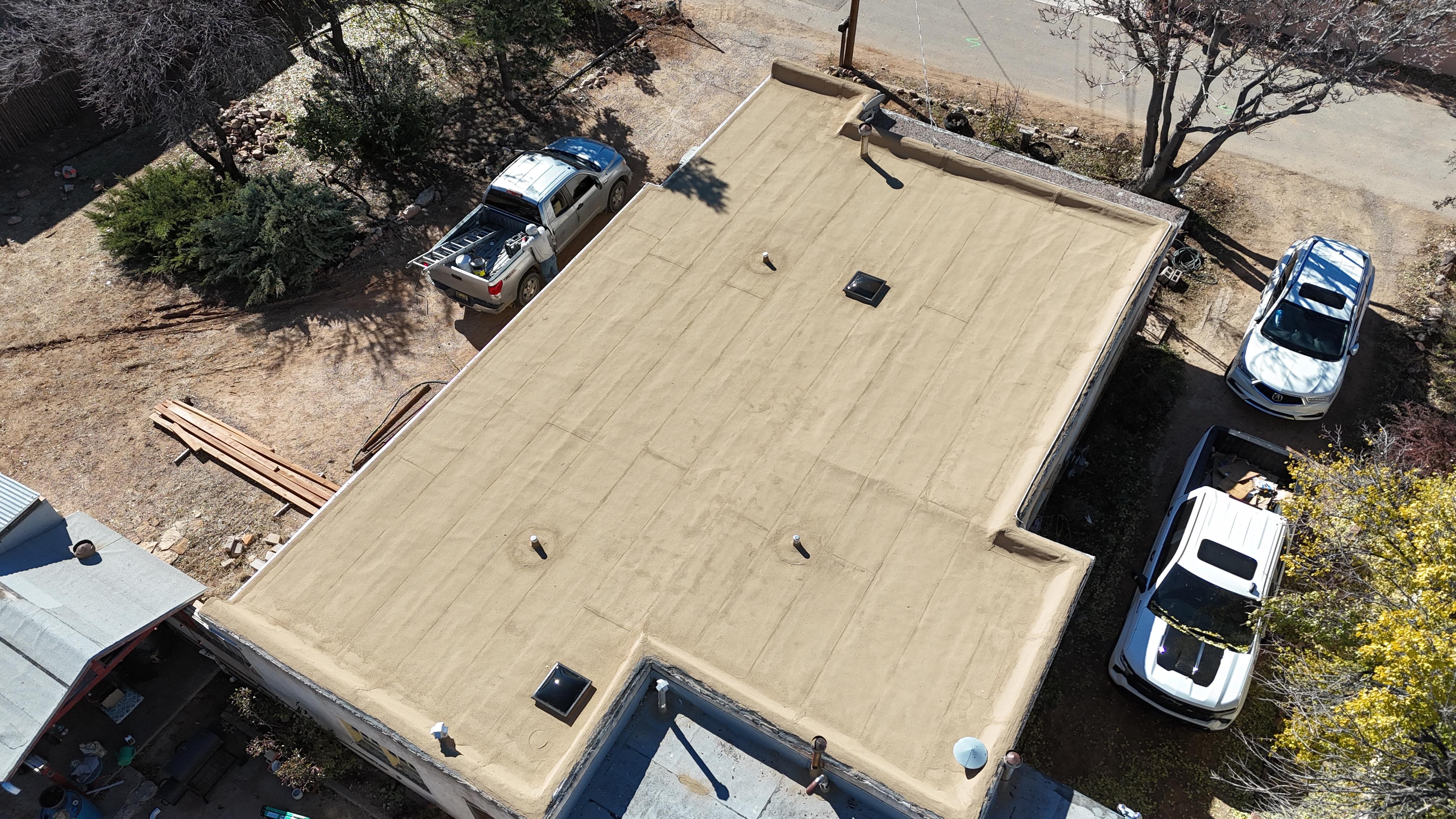 Flat roof, parapet, flashing, and membrane repairs for Sprayed Foam homes.